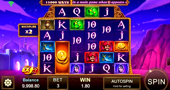 Tap or click on the spin button and take your chance in a game of Arabian slots.