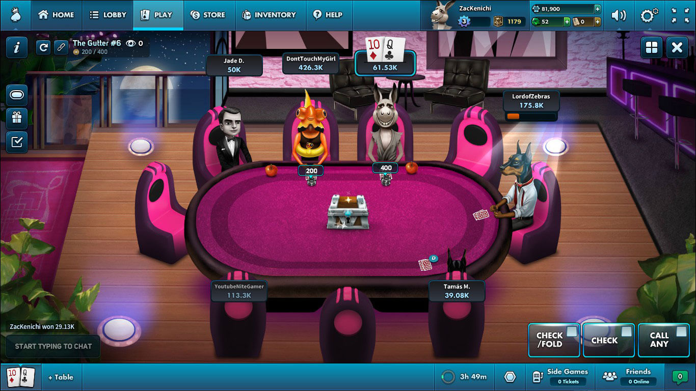 Customize your character with tons of collectibles for a more personalized poker experience.